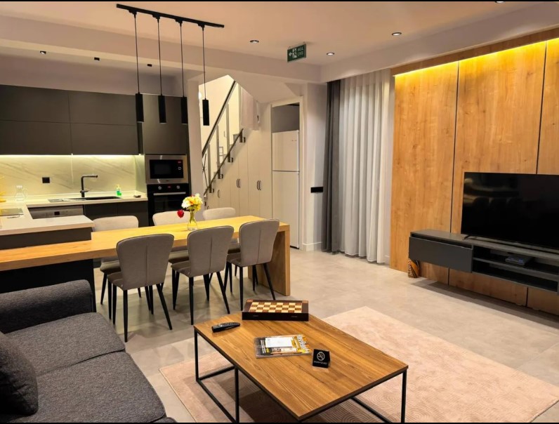 Villamızda yer alan modern Amerikan mutfak, tatil süresince ihtiyaç duyabileceğiniz tüm temel mutfak ekipmanlarıyla donatılmıştır. Denize yakın konumu, konforlu yaşam alanları ve doğayla iç içe atmosferiyle bu özel villa, Kemer villa kiralama seçenekleri arasında öne çıkan alternatiflerden biridir.